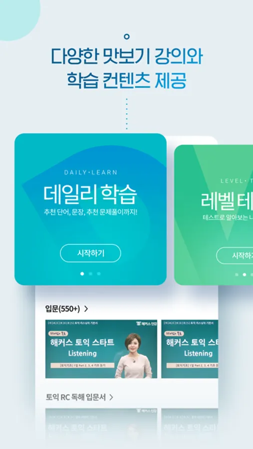 · 해커스만의 엄선된 컨텐츠(데일리 학습, 무료 레벨테스트, 무료 학습자료 등) 경험