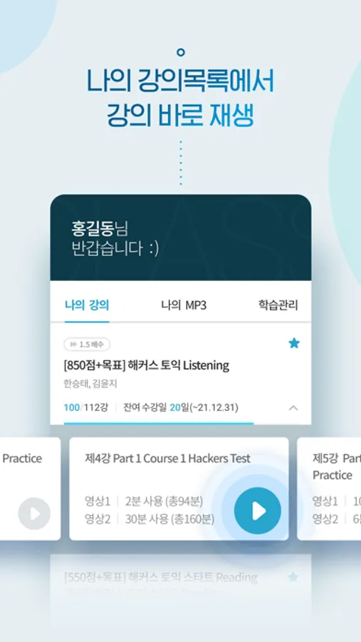복잡한 강의 찾기는 그만! 나의 강의 목록에서 강의를 바로 재생해보세요.