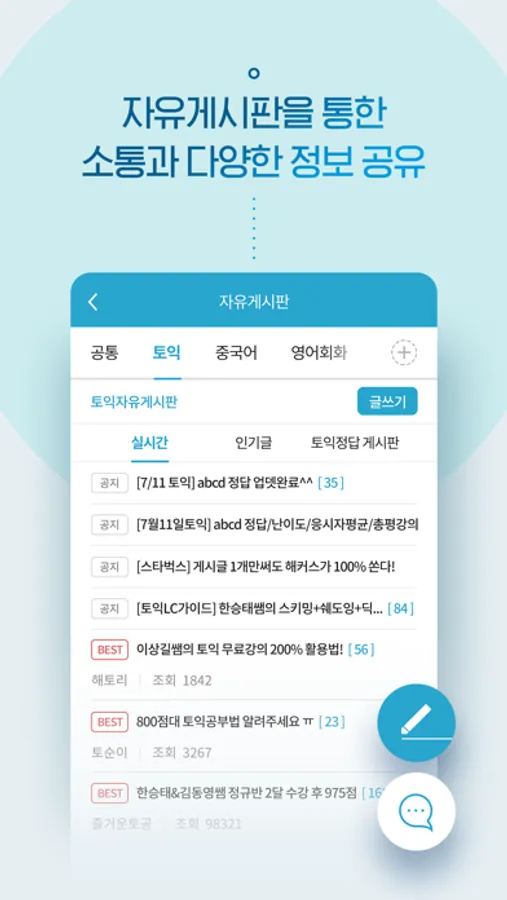 · 자유게시판으로 다양한 학습 정보 확인 및 공유