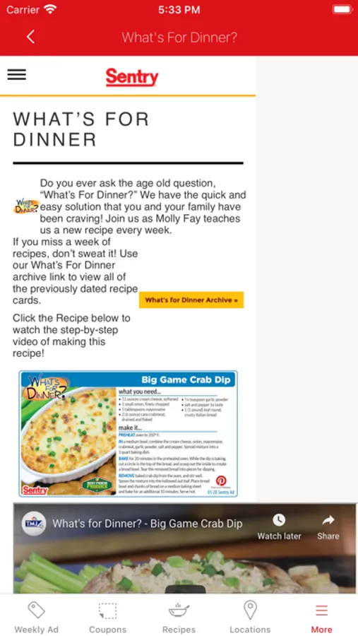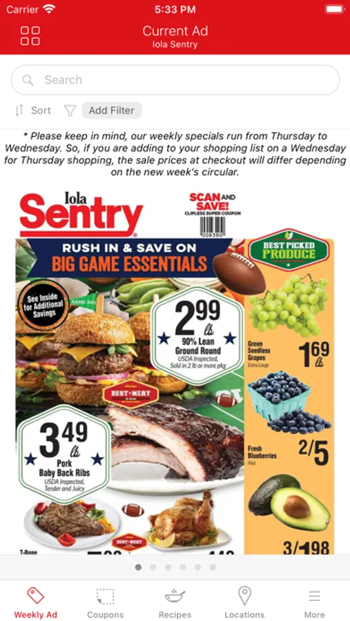 With the Sentry Foods app, you can view our weekly ad, find delicious recipes and add digital deals directly to your digital account and save instantly at checkout.