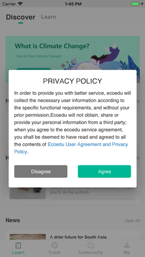 This is a climate change education community app, covering climate change courses, small knowledge, daily life carbon footprint calculator and communication community, to enhance students' and other people's attention to the environment and improve users' awareness of environmental protection.
