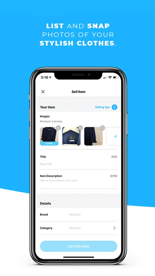 Snap photos of your cool fashion product and list it on the app in 60 seconds. Upload multiple images at once and leave the important details. Get messages and negotiate within the app. Think you can monetize your style? Create a name for yourself and be recognized as the seller with the trendiest and sleekest clothes.