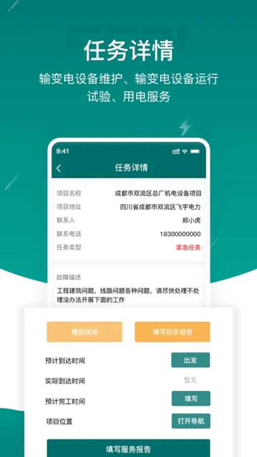 飞宇电力是一个“互联网+”和“大数据”的用户配电系统远程智能监控平台,用户可在线进行故障申报、巡视维护管理等在线操作。