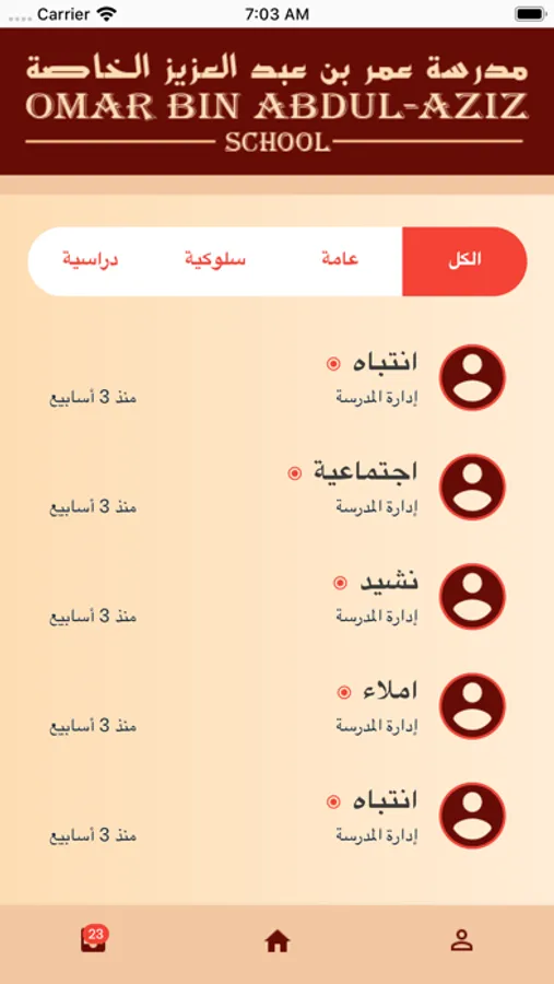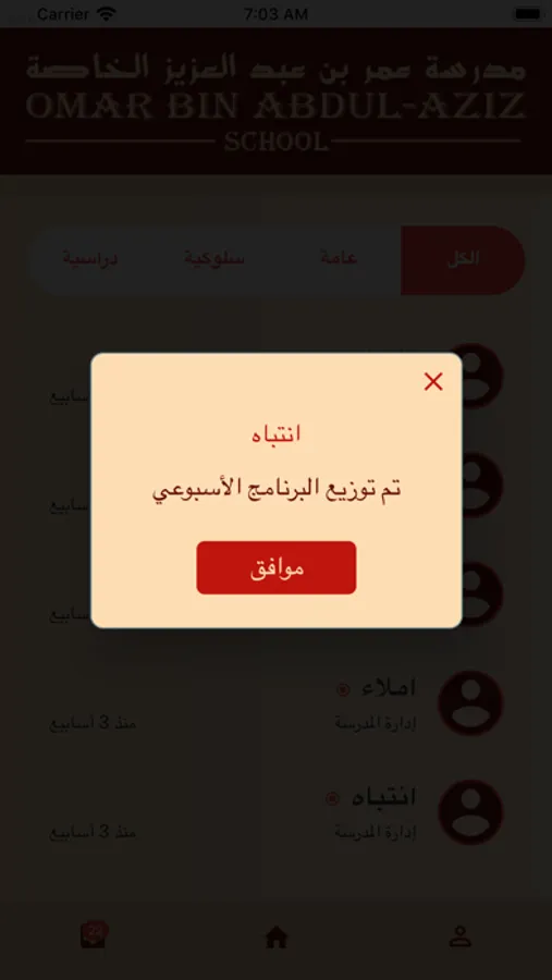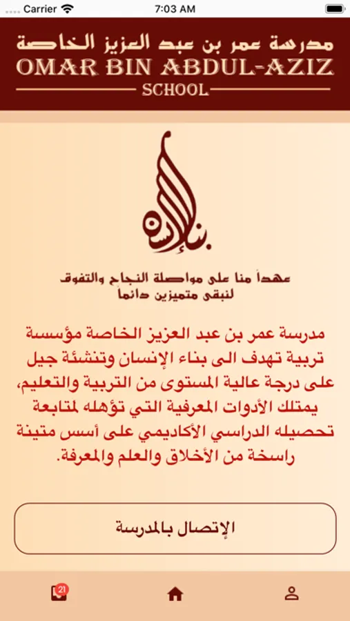 This app helps the parents of the students of Omar bin Abdulaziz Private School to know their children's academic, behavioral and general conditions through daily notifications sent via mobile phones and to facilitate communication with the school administration and mentors of the students and to keep an eye on the student’s educational development and his work record during the school year.