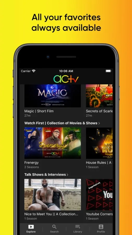 • We add Web Shows and Films by emerging filmmakers all the time. Browse featured titles or search and stream videos right on your device.