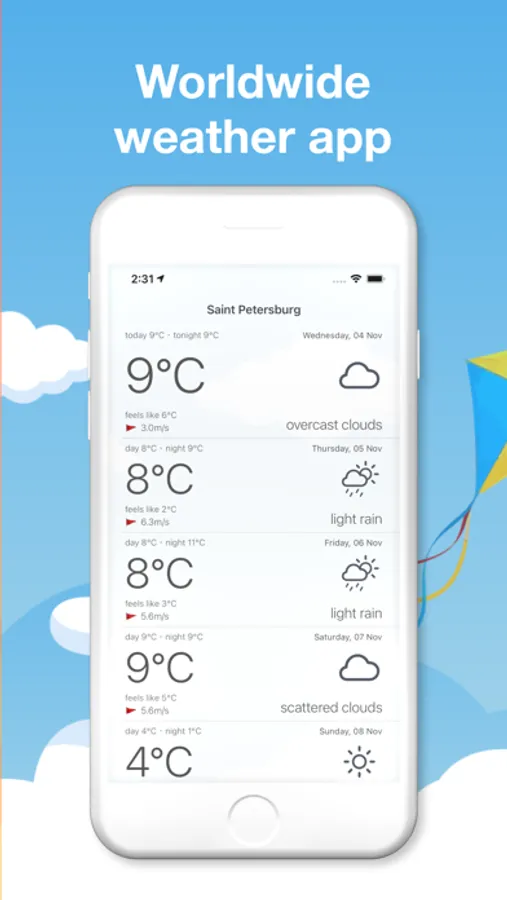 Worldwide weather app, provides weekly weather information.