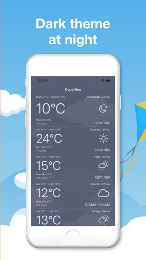 Pretty icons, friendly and simple interface, dark theme at night.
