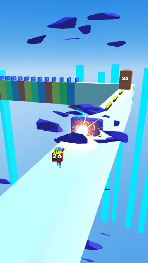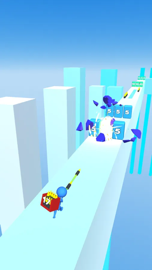 Run and collect ammunition on the ground. Break all the obstacles that come your way.