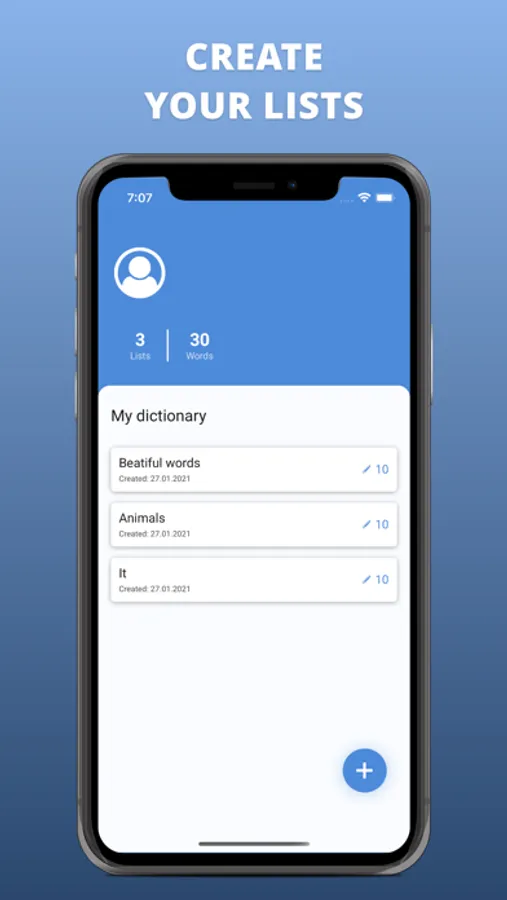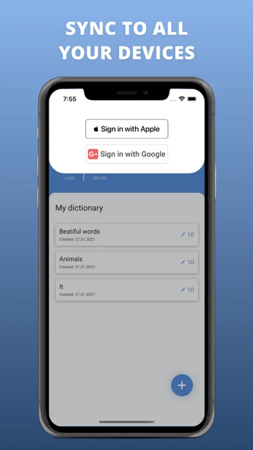 You can organize your words into lists and have them synced on all devices.