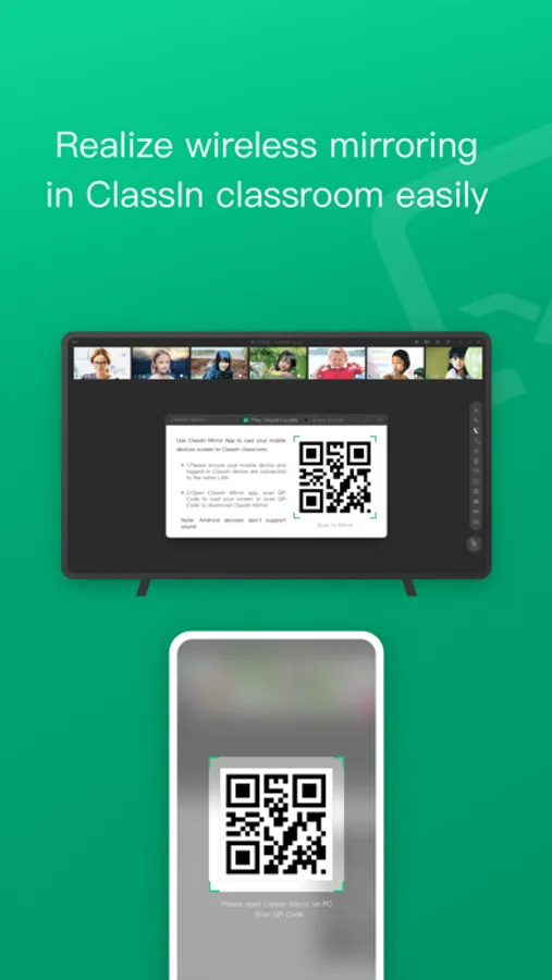 ClassIn Mirror is a simple and easy-to-use projection screen application. This application should be used with ClassIn online interactive classroom software. ClassIn Mirror can easily achieve one-click screen cast effect by casting your screen into the ClassIn online classrooms. ClassIn Mirror will support for online teaching scenarios preferably, such as Children English, K12, international education, training for study abroad ,quality-oriented education education and vocational education, etc.