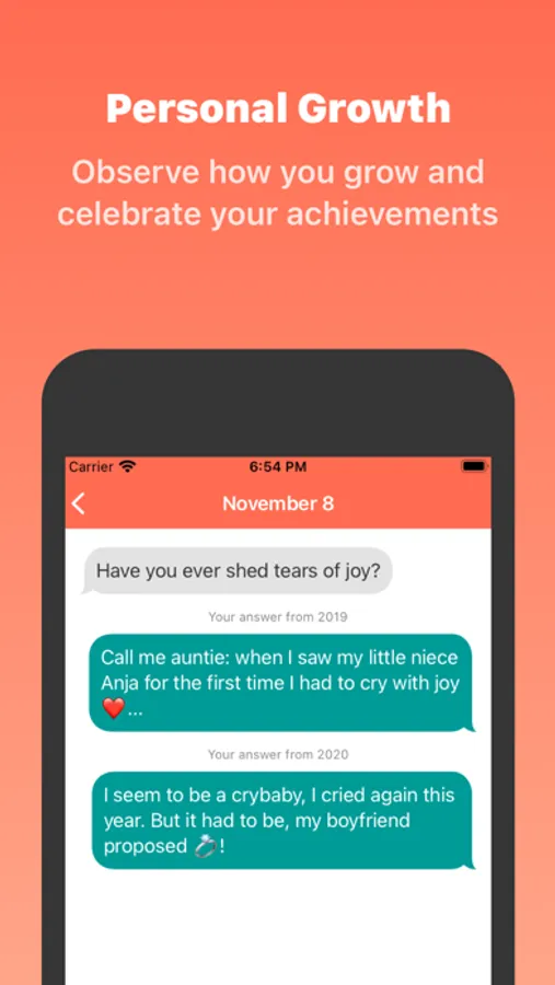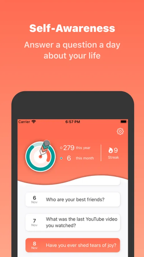 We are the diary app that helps you capture your thoughts and feelings every day. Our unique feature is to ask you a daily question that inspires you to reflect on your experiences and emotions.