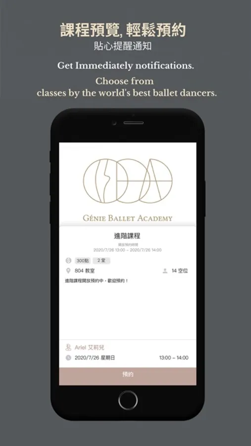 歡迎下載Genie Ballet Academy App,啟動你的每日芭蕾練習,輕鬆規劃課程、運動、生活平衡的最佳行程。