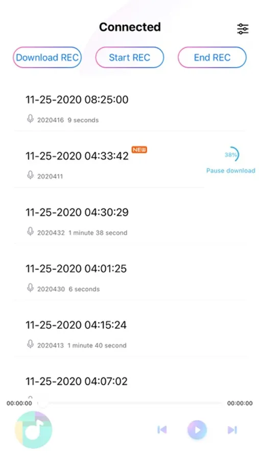 DVRlink is an APP that can synchronize uploading the recording audio files from the recorder to the mobile phone by Bluetooth connection.