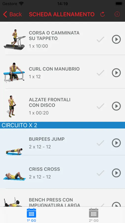 L'app ti permette di eseguire il tuo allenamento comodamente sul tuo dispositivo. La corretta esecuzione dell'esercizio è favorita dai video 3D che spiegano il movimento da eseguire. Inoltre ci sono molte altre funzionalità che ti aiuteranno a monitorare i tuoi progressi.