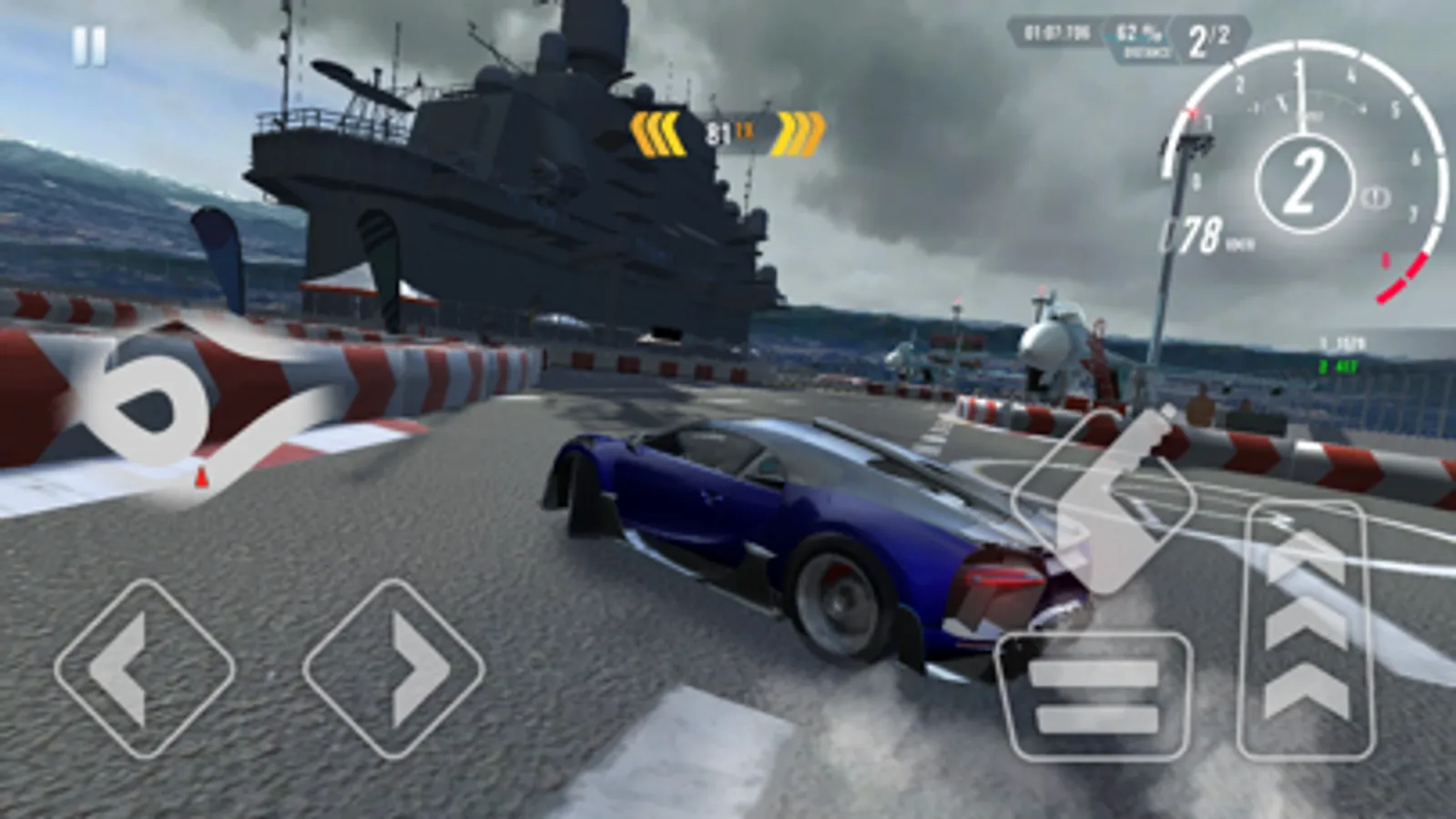 Complete a track in a controlled drift state. The number of points awarded depends on your speed and the length of the drift slide. The longer the slide and the more spectacular your angle is, the higher your reward will be.