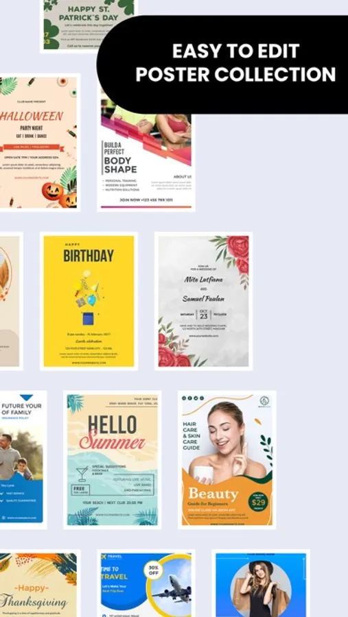 Poster maker is flyer maker, invitation maker, card maker, greetings card maker, wish card maker, creator app with lots of readymade templates like food, charity, job consultancy, hiring, christmas, festivals, new year, business, education, study, shops, days, wedding anniversary, beauty, make up, coffee cafe, seasons, marketings, advertisement, sports, tour, travels, baby shower, music, should, party, valentine day, car services, sales, furniture, spa, salon, health, fitness, conference, meetings, birthday, arts, designs, medical and etc.