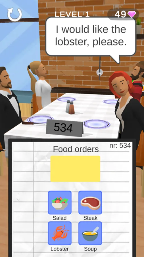 Play different fun mini games and be a waiter today! Fill glasses, take orders and help the customers.