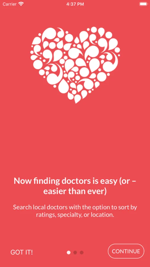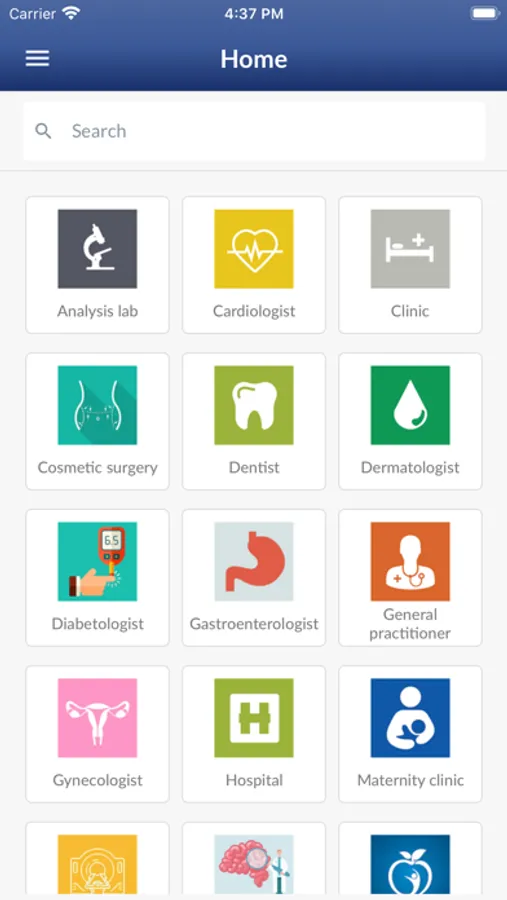 Registration in the application, location of doctors according to categories, display of contact information, possibility to add a notice + review.