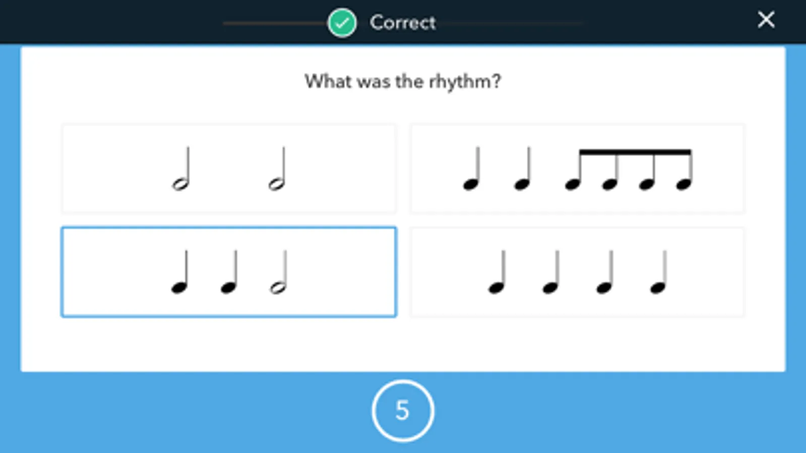 Rhythm Match - hear rhythms from the piece of Sight-Reading and identify the corresponding notation.