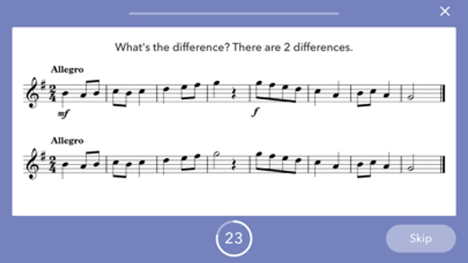 Each piece is preceded by a series of games designed to improve your ability to spot the features, patterns and characteristics of the music before you play it. Test yourself and see if you can achieve a three-star score in these fun games: