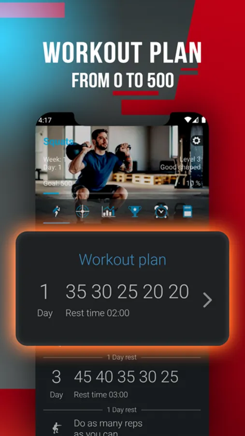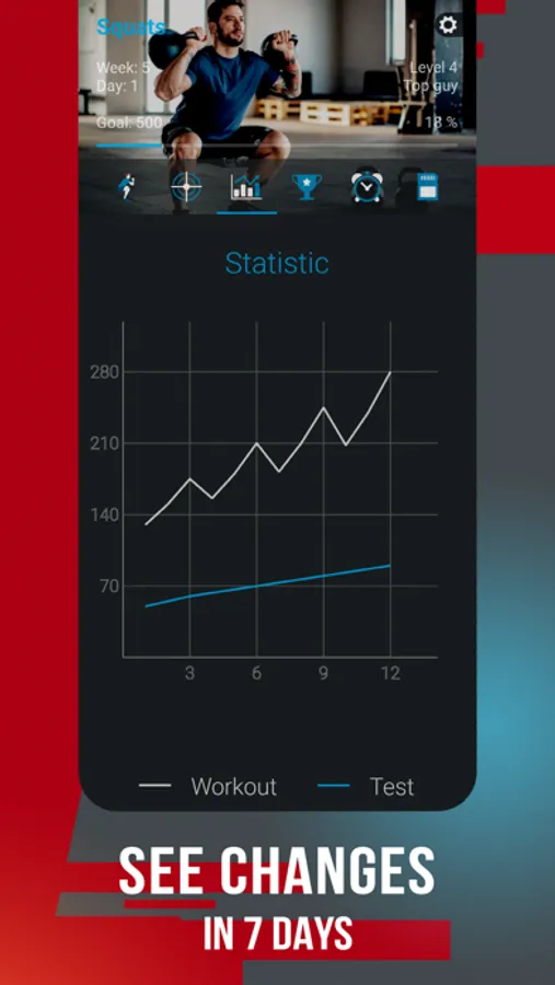 Each week you will have your personal workout goals. Achieve it to get to the next level.