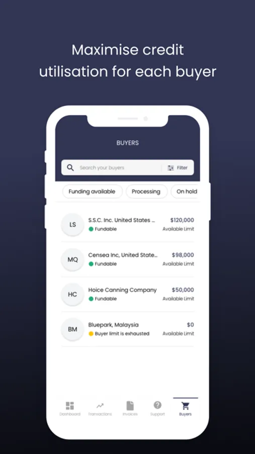 Check your buyer limits and funding availability status. Raise support requests to expedite approval or extend your credit line.