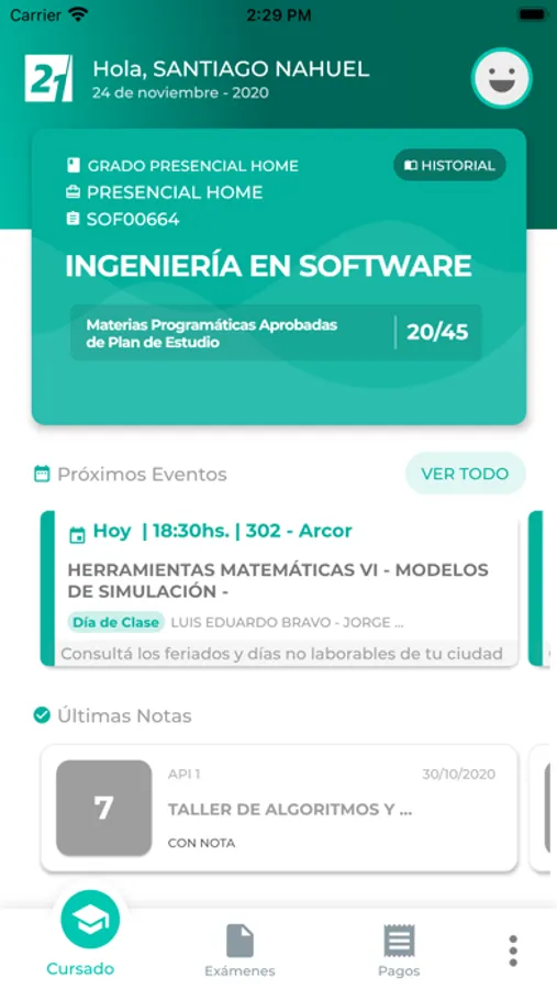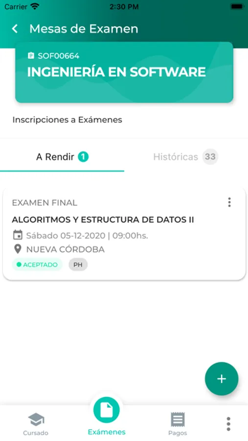 - Visualizar información de las clases y exámenes a los que estás inscripto