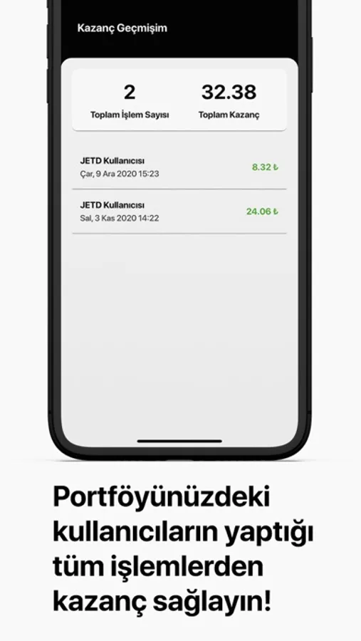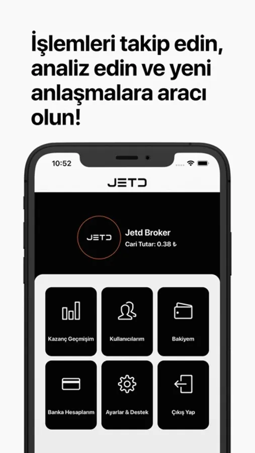 -JETD Broker uygulamasını kullanan brokerlar portföylerindeki kullanıcıların JETD platformunda gerçekleştirdikleri tüm işlemlerden kazanç sağlarlar.