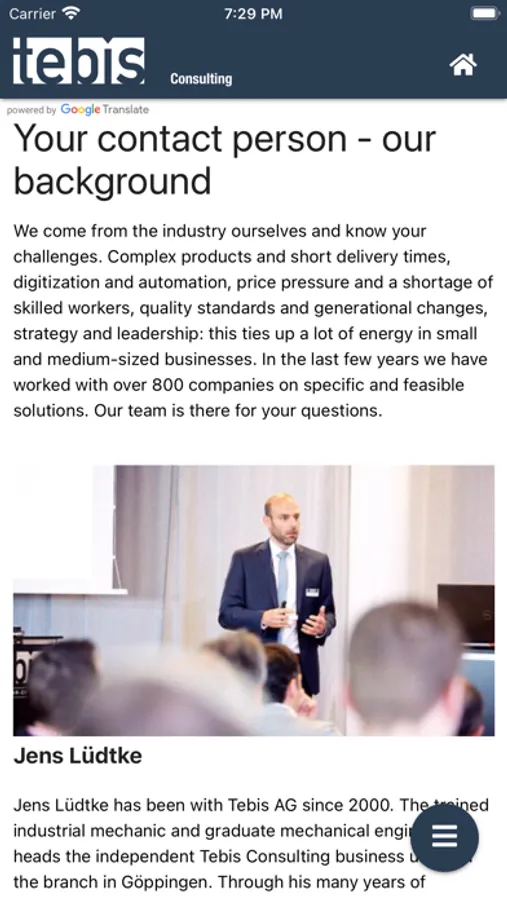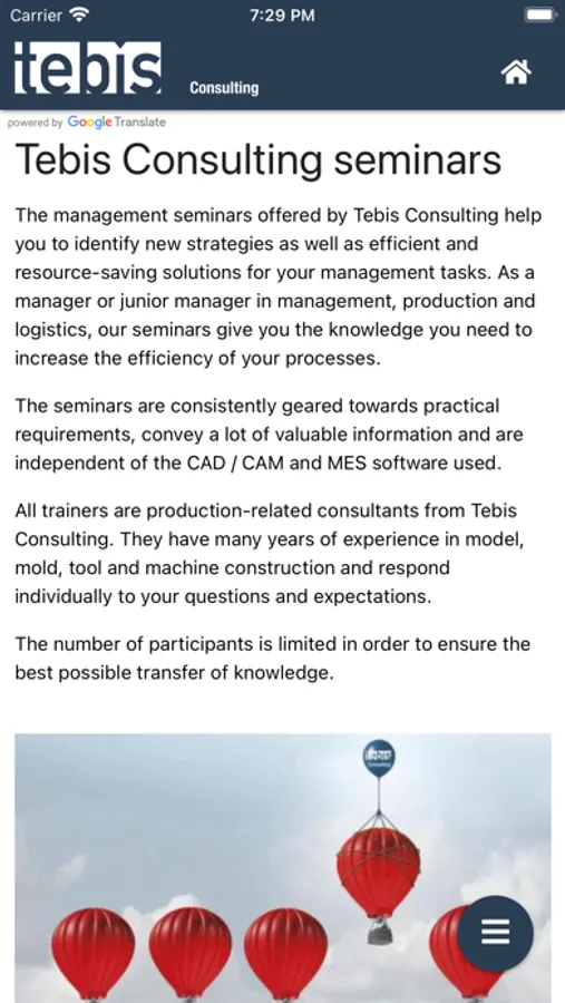 Thanks to our new Tebis Consulting App, you can find out all the important trends and news from tool, model and mold making. Benefit from insider knowledge and search specifically for information in our constantly growing know-how database. Use our message board to expand your network and exchange ideas. Our integrated tools can also optimize your processes: You can evaluate your project management, calculate the optimal hourly machine rate and much more... and as a user, you receive exclusive advance information on consulting events, seminars and offers from Tebis Consulting.