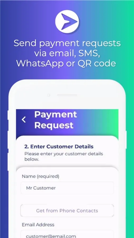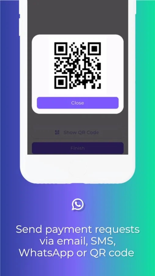 - Send payment requests by email, WhatsApp, SMS or QR code to collect payments in person.