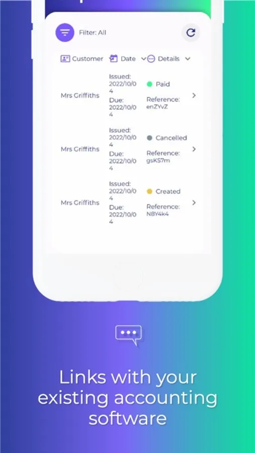 QuickBooks, Sage or Xero accounting packages can be linked to your Go Get Paid account If you use them, enabling payment requests for outstanding sales invoices. Linking your accounts package is simple and can be done at any point. When a payment is received against an invoice, the status is automatically updated. You can also create the invoice in our app, on the go, and it will be lodged in your accounting package for you. Your customers can download your invoice from our payment request too.