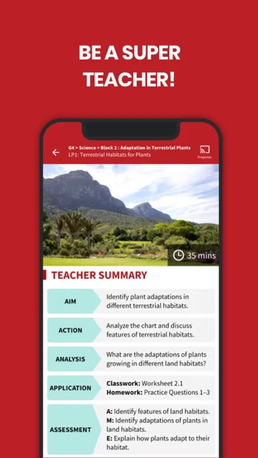 Simply choose the topic and lesson you are planning to teach, and go through the step-by-step instructions to get ready for your class. The SuperTeacher App is designed for you to easily prepare anytime, anywhere, with features like the following: