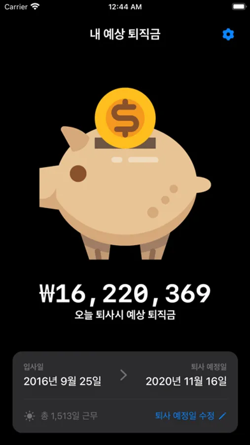 • 내 현재 월급과 입사정보를 바탕으로 예상 퇴직금을 계산해줌