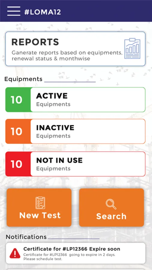 • Digital Record keeping of Equipments & Machinery with all past testing and certification records