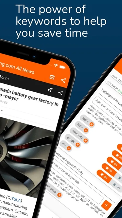 This app will notify you about any news containing the keywords you set, such as "Tesla", "Google", "Apple", "Microsoft" or any other company.