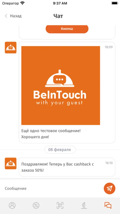 BeInTouch это удобный сервис для ресторанов работающих с iiko для общения с гостями через чат-боты и мобильное приложение.