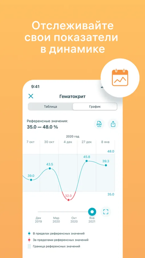 — Мониторинг динамики показателей. Приложение строит график, отражающий изменения в результатах исследований.