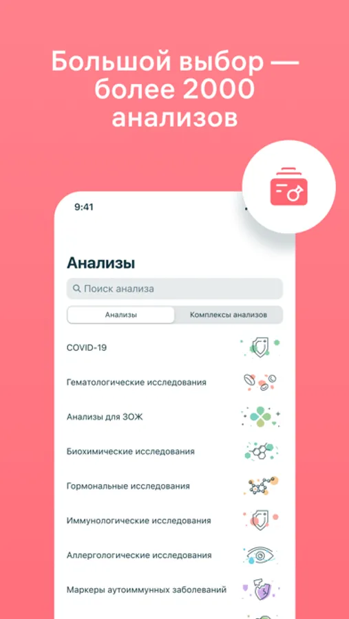 — В приложении доступны более 3000 видов медицинских исследований: анализы крови и мочи, тесты на гормоны, инфекции, ВИЧ, гепатиты, генетические, иммунологические исследования и другие. Вы найдете подробное описание лабораторных тестов и показания к ним, информацию о подготовке и расшифровке результатов, границах нормы для разного пола и возраста и причины отклонения от нее, а также актуальные цены. Быстро найти нужные исследования поможет поиск по названию.