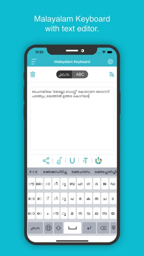 • Once you start typing, you can underline, color or change the font of any letter to emphasize or de-emphasize it in this best Malayalam Keyboard And Translator for iOS.
