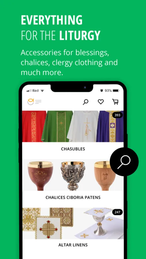 Download the App now and discover our departments: Religious items, Monastery products, Liturgical accessories, Christmas, Consumables, Products for Weddings, Baptisms, Confirmations, Communions and much more.
