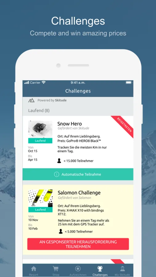 Set up your Skitude profile to track your activities using the GPS tracker. Find out where you are in the season's rankings and try to complete the challenges to be in with a chance of winning great prizes.