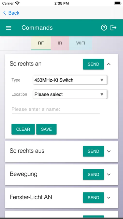 - Switching of taught-in devices (e.g. switch sockets / via IR commands to TV, AV devices)
