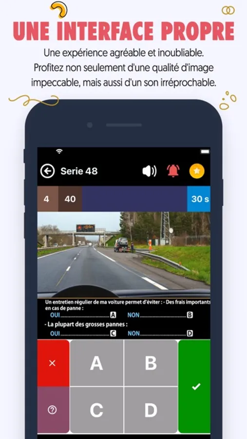 L'application Code de la route c'est pour l'apprentissage de la conduite est comme une école de conduite, elle vous aide à passer le permis de conduire avec succès et confiance en vous, l'une de ses caractéristiques distinctives est qu'elle est avec du son et de l'image comme des examens officiels du permis de conduire, dans quelle mesure l'application peut être utilisée quand vous le souhaitez et où que vous soyez pour pratiquer et tester vos capacités.