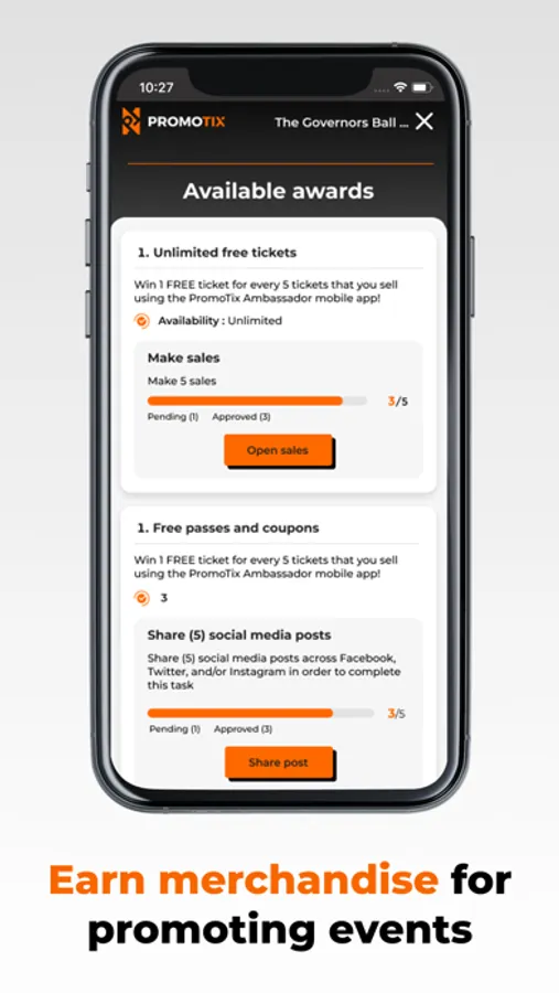 PromoTix Ambassador is a mobile app for music enthusiasts to earn free tickets to music festivals, concerts, and music venues, as well as cash, artist merchandise and other rewards for helping event creators promote upcoming shows.