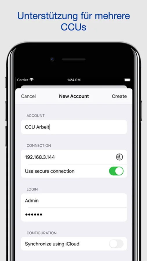 The application requires a HomeMatic CCU base station: a CCU 2, CCU 3 or RaspberryMatic. Access to the "Remote Homematic script API" may need to be enabled in the CCU firewall settings.