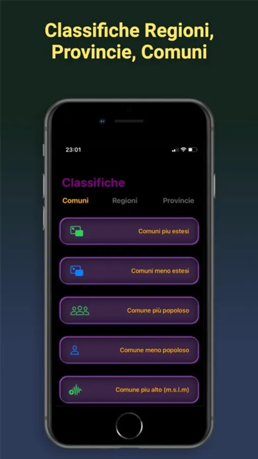 hai a disposizione tutti i dati dettagliati dei singoli Comuni,Provincie e Regioni e Frazioni.