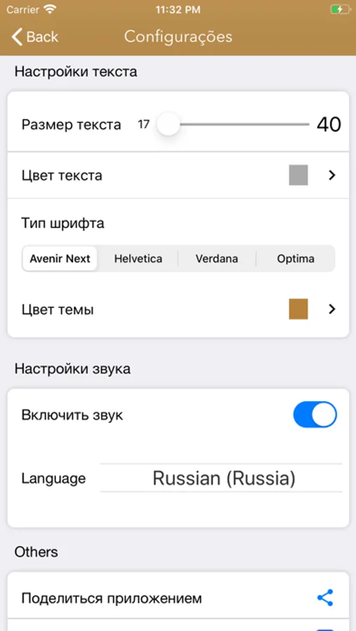 Включает настройки размера шрифта, а также аудио для всех глав Библии (
