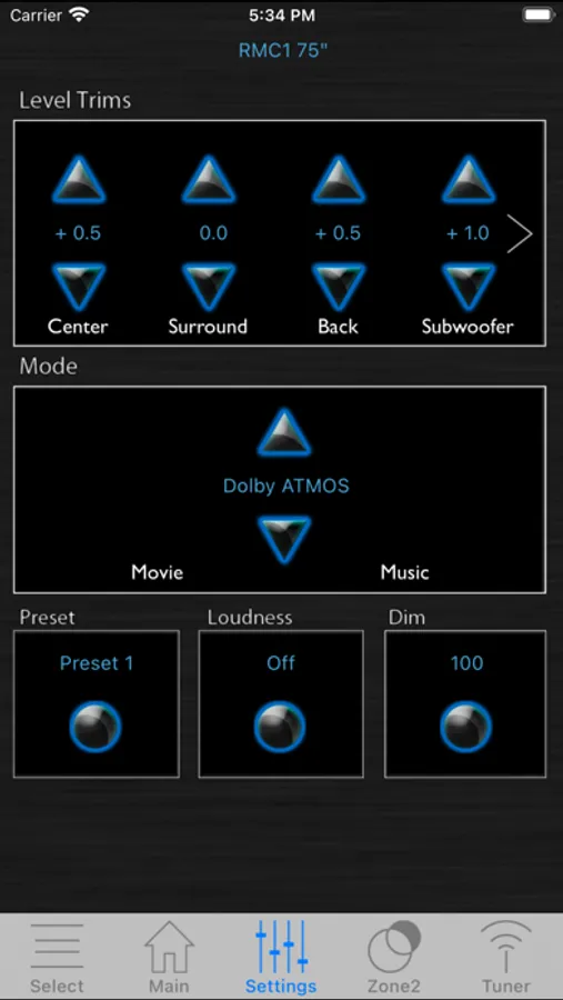 - Control Main Zone and Zone 2 power, volume and inputs.