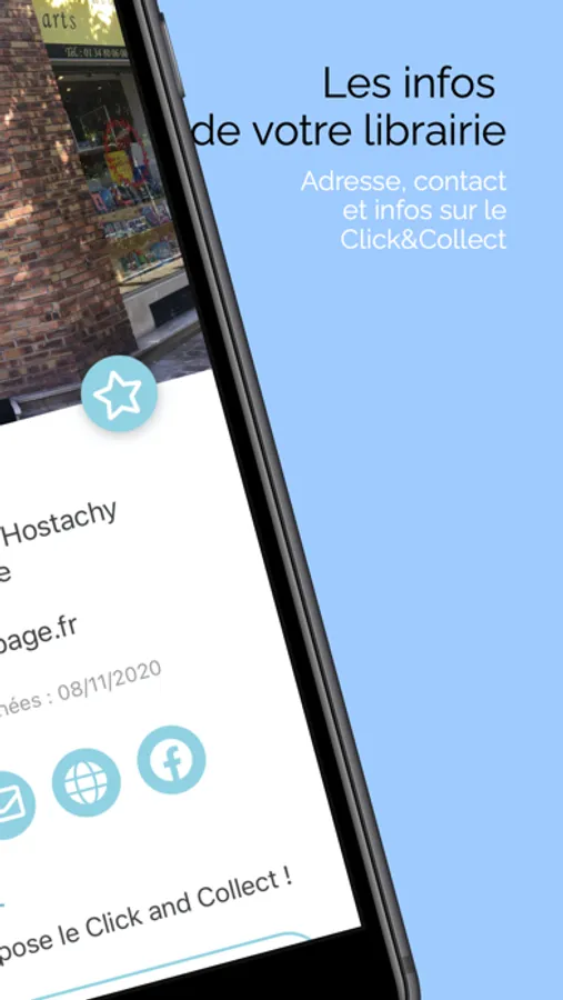 Pour les libraires, nous affichons l'ensemble de vos informations de contact (site, téléphone, email, page Facebook, Instagram, Twitter...). Nous affichons également les informations que vous avez diffusés pour expliquer à vos clients comment acheter leurs livres chez vous en Click&Collect.
