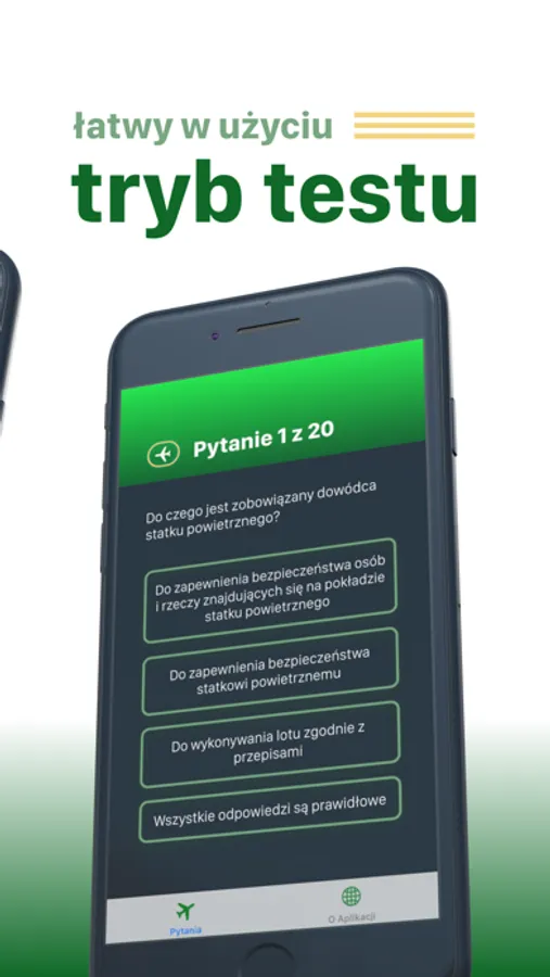 Pytania PPLA - Test dla pilota to aplikacja pozwalająca zarówno poznać pytania i właściwe odpowiedzi do pytań egzaminacyjnych dostępnych na stronie Urzędu Lotnictwa Cywilnego, jak również sprawdzić swoją wiedzę odpowiadając na 20 losowo wybranych pytań.